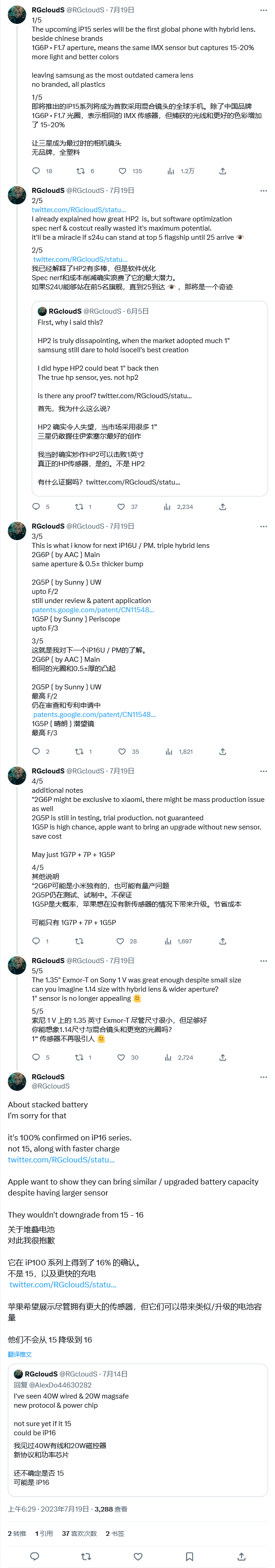 消息源 RGcloudS 今天发布系列推文,表示除了部分中国手机品牌之外,即将到来的 iPhone 15系列是首款采用混合镜头的国际手机。