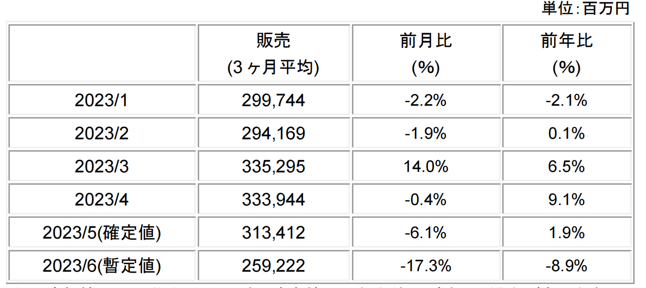 日本半导体制造设备协会(SEAJ)7月25日公布统计数据指出,2023年6月份日本制芯片设备销售额(3个月移动平均值)为2592.22亿日元,较去年同期减少8.9%,是5个月来首度同比陷入萎缩,创自2021年8月以来(2507.58亿日元)新低水平,且降幅创约三年半来(2019年11月,年减9.6%)最大。