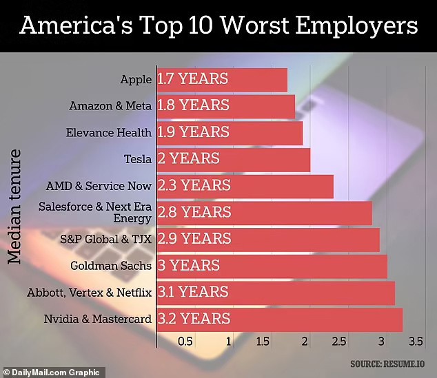 包括苹果、特斯拉、高盛和万事达(Mastercard)在内的很多美国知名公司,其员工流动性非常高,无法妥善保留人才。