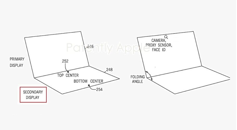 专利描述了柔性屏幕技术,采用像素阵列形成显示面板,设备折叠后显示面板会沿着铰链弯曲。