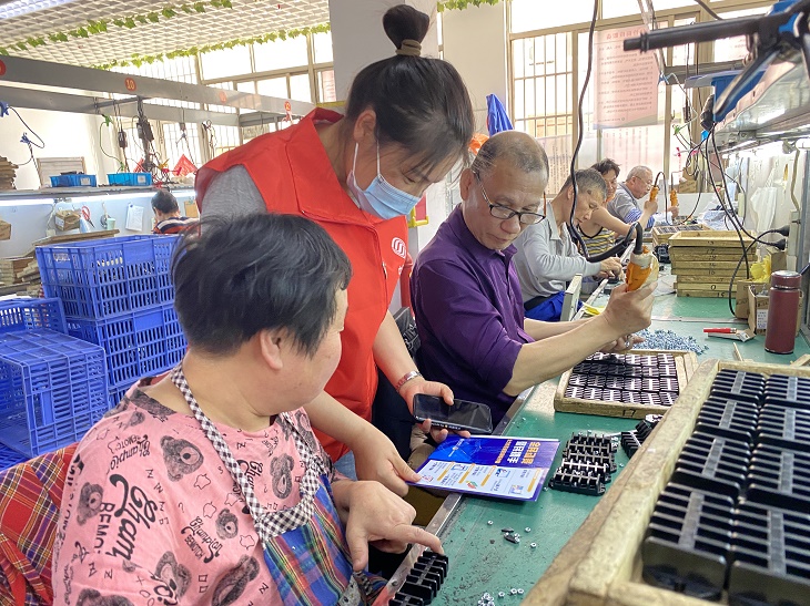 志愿者们还在现场科普了移动5G网络,用丰富生动的案例讲述了5G在各个领域的应用,员工们纷纷表示大开眼界。针对年龄偏大的员工,志愿者们一对一提醒老人注意防范电信诈骗。考虑到有几位老人有听力障碍、理解能力偏弱,志愿者以“漫画+手势”的方式,帮助老人理解。圆梦工厂的丁老先生夫妻听得喜笑颜开,反复跟志愿者说:“懂啦,懂啦,我们不上当!”