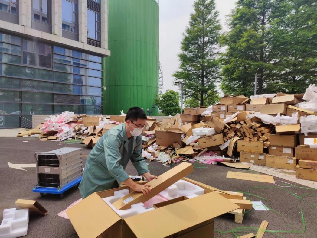 5月初,华诞转战奔赴疫情形势相对较为严峻的闵行,进驻浦江核心机房。在这里,他接到了联通云扩容的重要任务。器材和人手短缺怎么办?“办法总比困难多!”华诞没有丝毫怨言,通宵达旦地协调组织,在5天内将联通云扩容物资全部筹措到位。面对重量超5吨、总计超300件的2个满载标准集装箱工程物资,他没有等靠要,果断地和项目经理、值守同事一起撸起袖子直接上阵,三人靠自己的双手一趟趟装卸搬运,在烈日下用汗水确保了项目进度。
