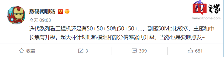 数码博主 @数码闲聊站 今日透露,小米 13 系列工程机拥有三颗 5000 万像素摄像头和两颗 5000 万像素摄像头 + 另一摄像头版本,该系列机型的副摄多采用 5000 万像素摄像头,并且主摄和中长焦有所升级。同时,较晚发布的小米 13 Ultra 预计会将新模组和部分传感器再进行升级。