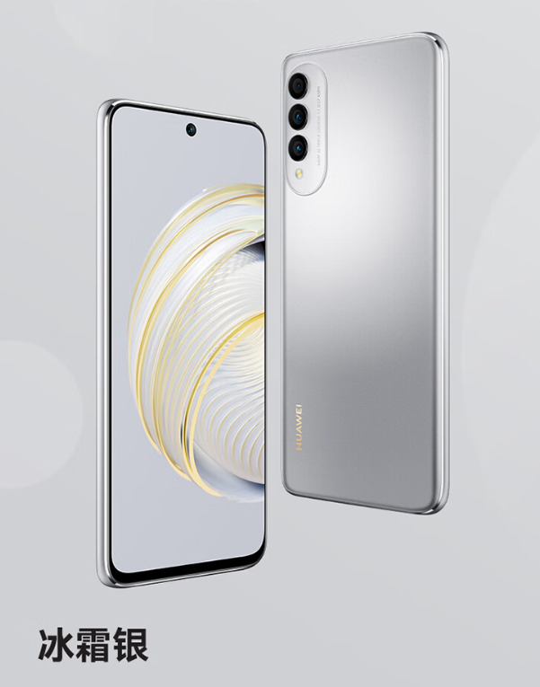 华为 nova 10z 共有三款配色:翡冷翠、冰霜银、幻夜黑,采用居中挖孔屏,后置竖排三摄。