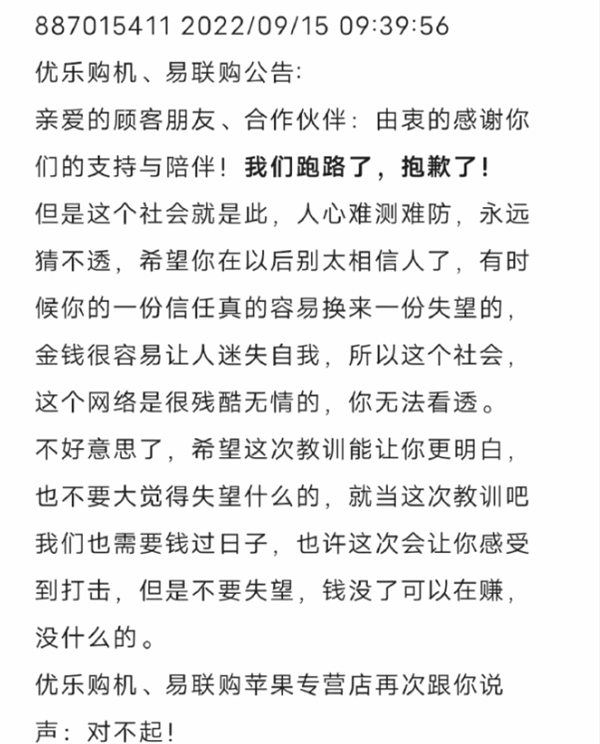 据河南电视台《小莉帮忙》此前消息,有消费者在名为易联购线上商城的平台上抢到了 11 台 iPhone 14系列、4 台 iPhone 13系列,总计支付了 158000 元的货款。但几天后该消费者尝试与客户联系询问货品情况时,却联系不到人,等来的都是机器人回复。该消费者表示,自己和其他几位同样花了十数万买机的朋友都遇到同样的情况。